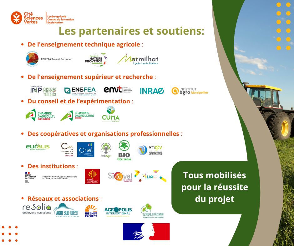 - Des coopératives et organisations professionnelles : Euralis, La Coopération Agricole Occitanie, CRIEL Occitanie, RobAgri, Bio Occitanie, Société Nationale des Groupements Techniques Vétérinaires ;
